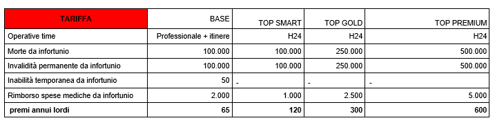 Possibilità di scegliere tra una copertura limitata agli infortuni occorsi nell'ambito della vita professionale o estesa anche all'attività extraprofessionale
